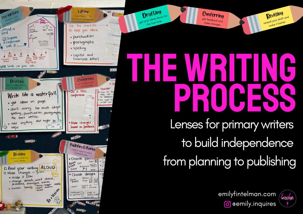 Pick up any book on teaching writing and it’ll deliver you a different version of The writing process. That’s ok. I don’t think there are two authors in the world who would agree that every step is the same, has the same name, or even has a name.